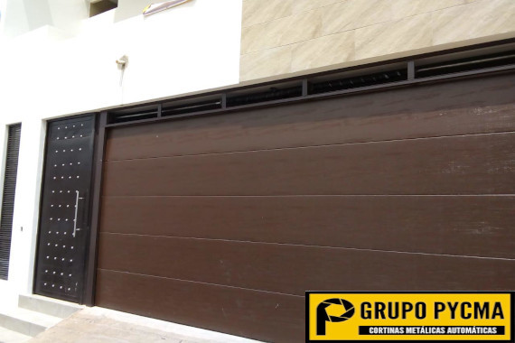 puerta ascendente con estilo y con apariencia abatible o plegable, gracias a la composición de sus